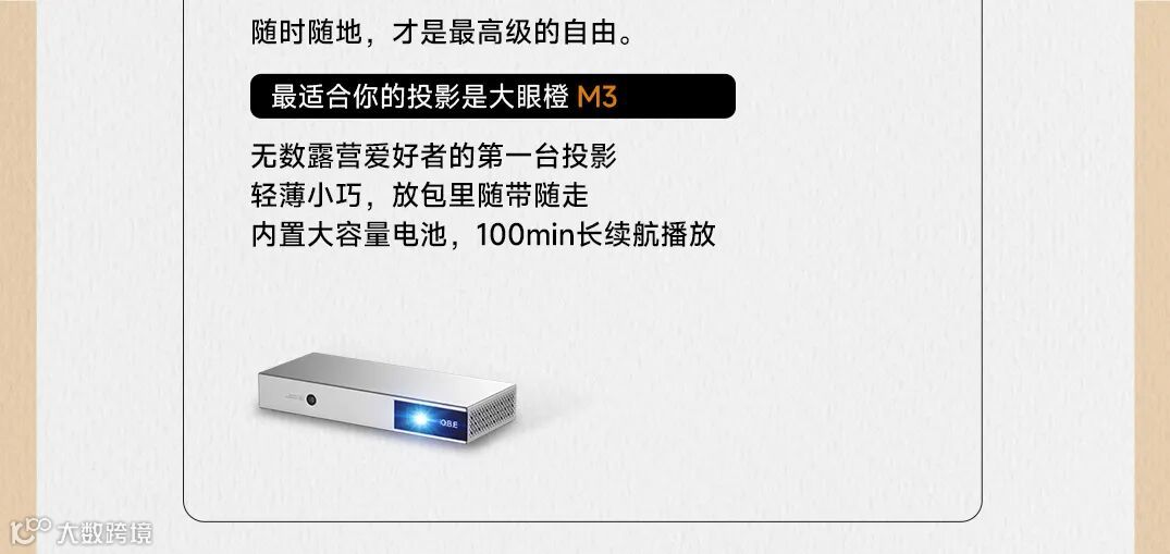 专注于智能投影仪研发智造与提供行业解决方案。关注大眼橙,了解大屏视界,分享品质生活。点我获取投影知识、玩机攻略、最新优惠、活动快讯、客服咨询等一手爆料!