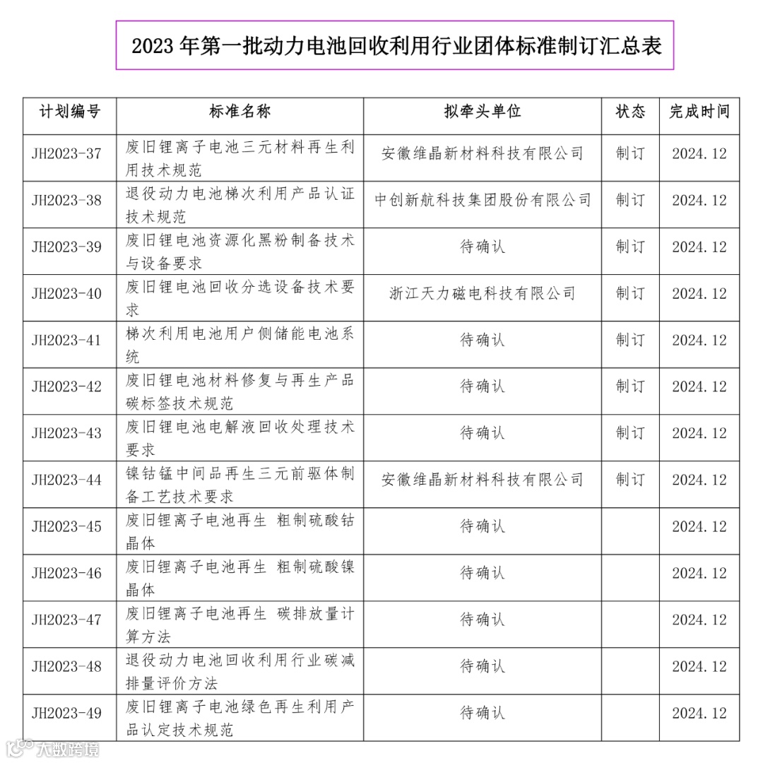 为贯彻落实《中华人民共和国标准化法》、国务院《深化标准化改革方案》、国家标准化管理委员会和民政部发布的《团体标准管理规定》(国标委联【2019】1号)等文件精神,加强行业标准体系建设,提升团体标准对市场发展的技术支撑和基础保障水平。废旧锂电池是宝贵的“城市矿山”,退役动力电池绿色再生和梯次利用是保障报废动力电池材料高效回收与循环利用的重要基础。由中国电子节能技术协会电池回收利用专业委员会组织的《废旧锂离子电池三元材料再生利用技术规范》、《废旧锂离子电池再生 粗制硫酸钴晶体》等13项团体标准,现面向相关行业征集标准起草单位。