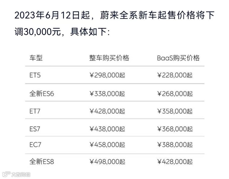 在充分听取用户意见、充分考虑用户的多样化服务需求后,6月12日,蔚来宣布全系车型起售价下调3万元。