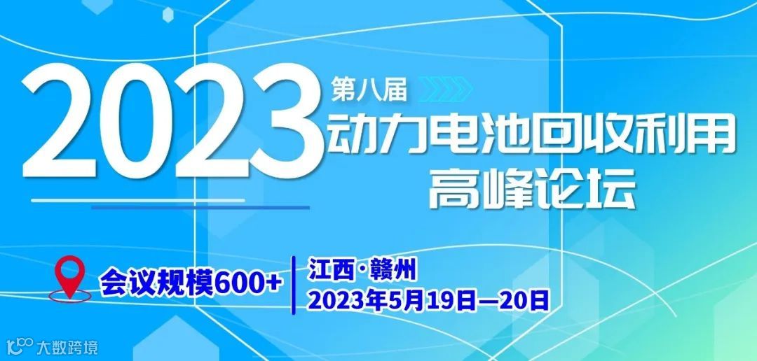 动力电池回收联盟预计,2023年退役动力电池将达60万吨,2028年后动力电池退役将进入巨量时代,届时退役动力电池将达到四、五百万吨每年,未来我国动力电池回收市场空间较大。“第八届动力电池回收利用高峰论坛”将于2023年5月19-20日在江西省赣州市举办,诚挚邀请您和贵单位相关人员参加本次行业盛会。