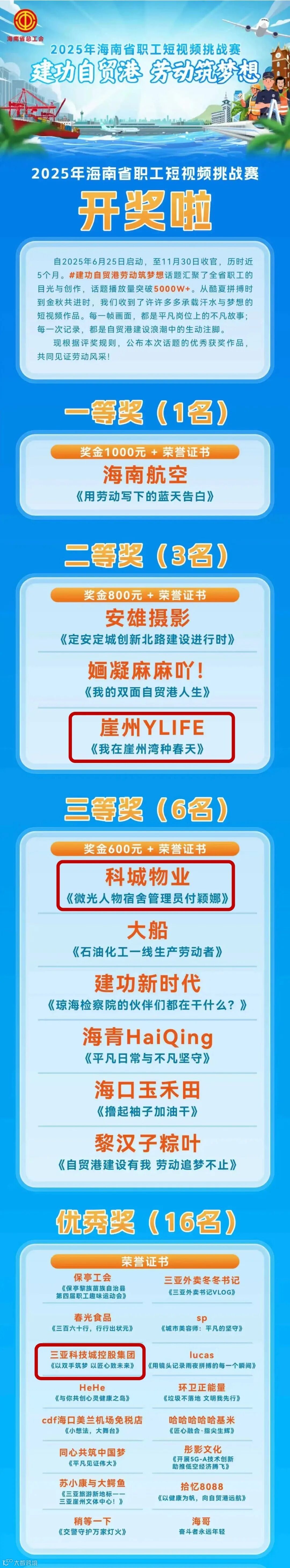 在刚落幕的2025年海南省职工短视频挑战赛中