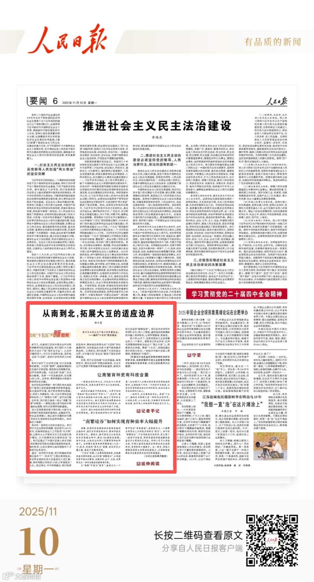 目前,我们正在构建“北京抓基础、海南研技术、黑河出良种”的联动新格局,为北方主产区源源不断地输送带有新基因、新性状的大豆品种“新鲜血液”。我们还与多学科专家团队合作,把人工智能、基因组选择等最新技术融入育种体系,让育种更精准、更高效。