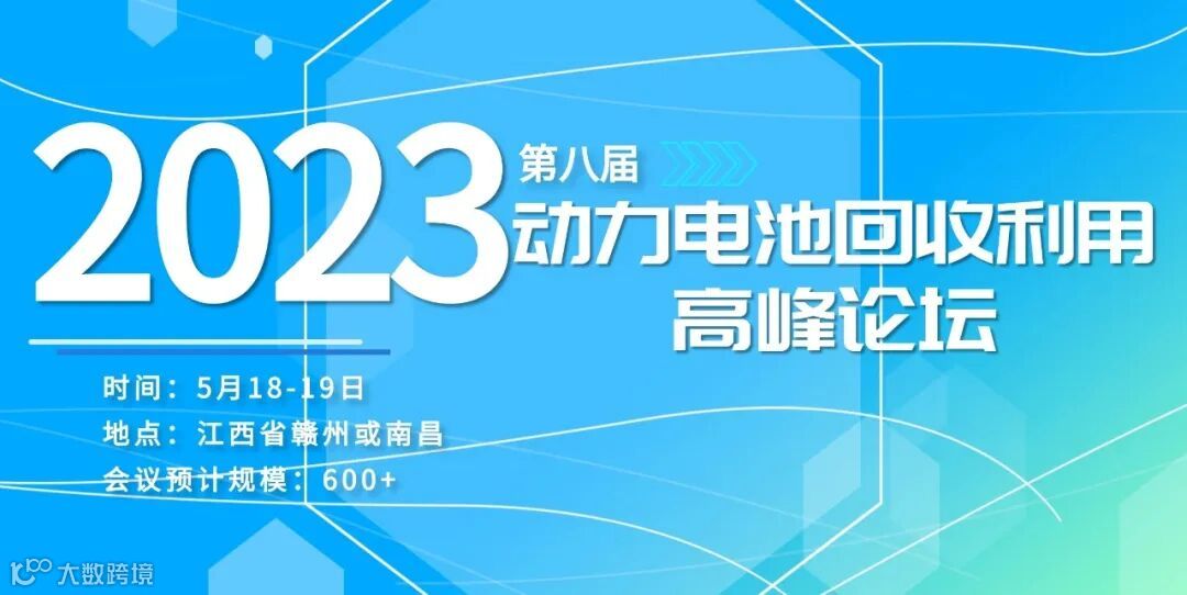 动力电池回收联盟预计,2023年退役动力电池将达60万吨,2028年后动力电池退役将进入巨量时代,届时退役动力电池将达到四、五百万吨每年,未来我国动力电池回收市场空间较大。“第八届动力电池回收利用高峰论坛”将于2023年5月18-19日在江西省举办,诚挚邀请您和贵单位相关人员参加本次行业盛会。