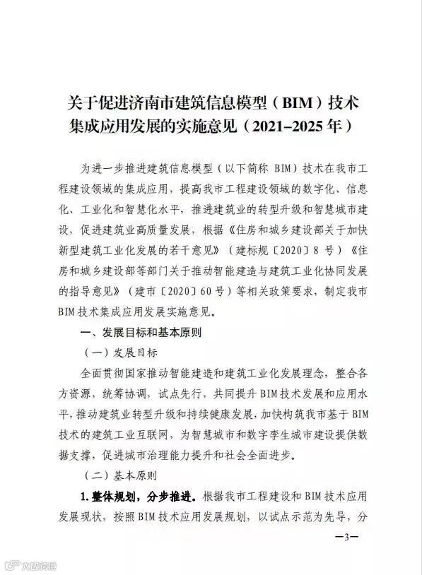 为进一步加快BIM 技术推广应用工作,按照济南市政府工作部署,济南市住房和城乡建设局、济南市工业和信息化局、济南市大数据局、济南市自然资源和规划局、济南市城市管理局、济南市城乡交通运输局、济南市应急管理局、济南市公安,联合印发《关于促进济南市建筑信息模型(BIM)技术集成应用发展的实施意见》(2021-2025 年)。