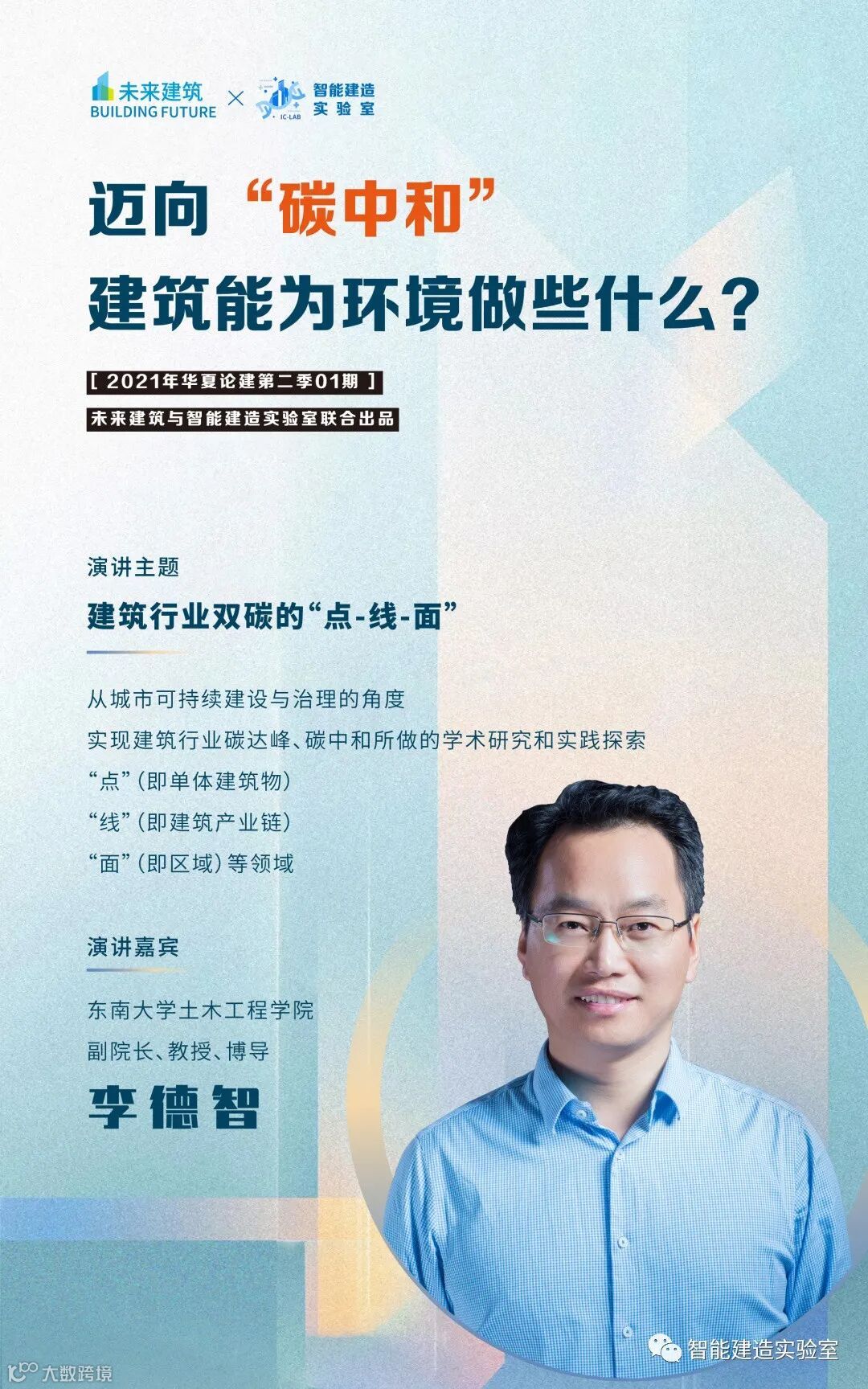 华夏论建第二季01期的直播受到了各方的关注与支持,本期带来东南大学土木工程学院党委委员、副院长、教授、博士生导师李德智老师直播分享的主题《建筑行业双碳的“点-线-面”》。