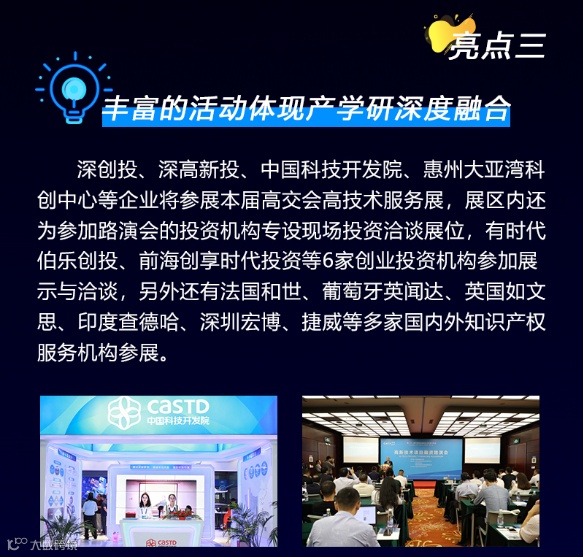 高交会由中国商务部、科技部、工信部、国家发改委、知识产权局、中国科学院、中国工程院等国家部委和深圳市人民政府共同举办,分为展览、论坛会议活动和分会场三大方面内容,将有来自108个国家和地区的预计60万人次观众参观。
