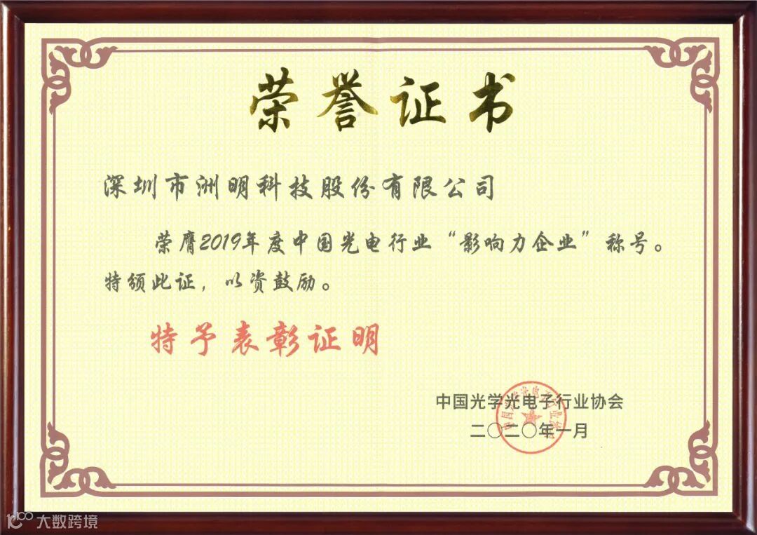 近日,在光电行业的优秀企业年度评选活动中,洲明成功荣获两大奖项而归——深圳市洲明科技股份有限公司荣膺2019年度光电行业“影响力企业”称号,旗下全资子公司深圳蓝普科技有限公司荣膺2019年度光电行业“社会贡献企业”称号。
