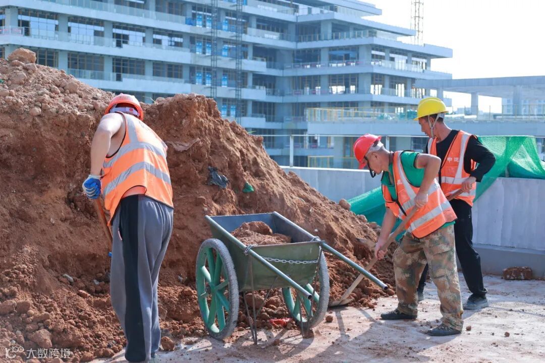 去年8月实现封顶的三亚崖州湾科技城南海资源保护开发与利用产业创新平台项目正处在外立面装修阶段。节后,第一批复工的工人们正在为后续恢复满负荷施工做相关准备。