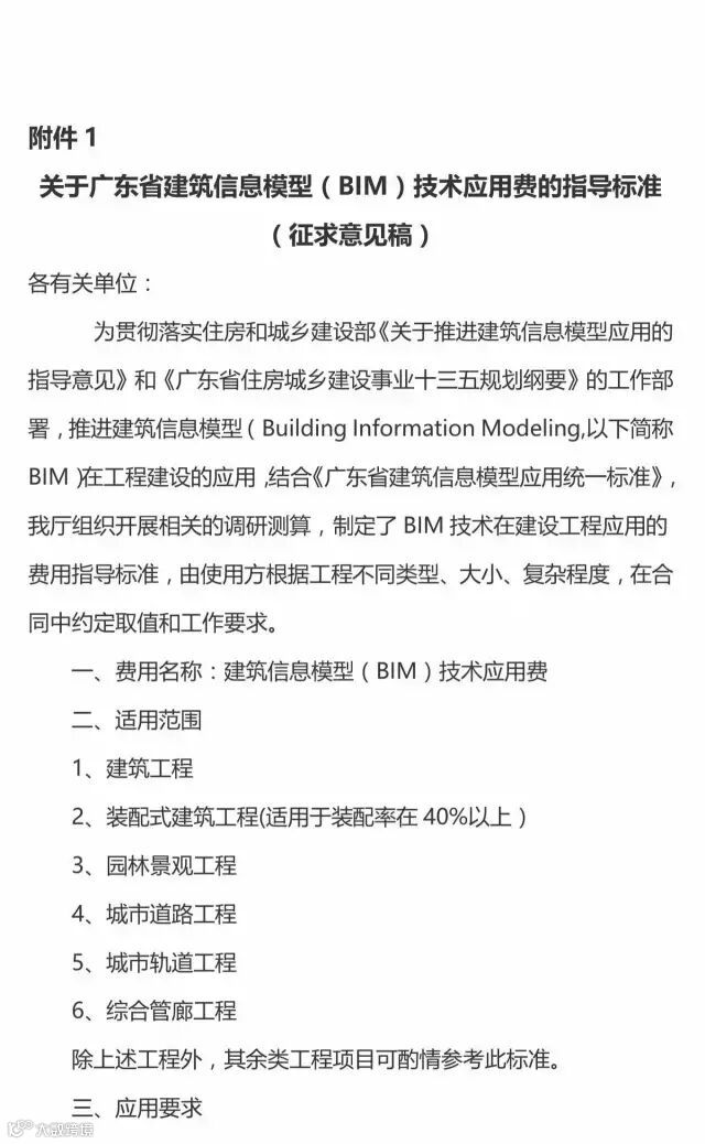 1.广东省建筑信息模型(BIM)技术应用费的指导标准(征求意见稿)