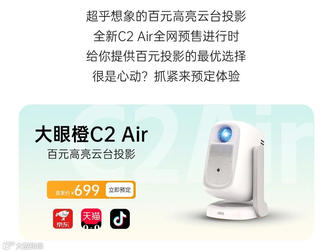 导读:大眼橙C2 Air预售开启,重新定义百元投影。