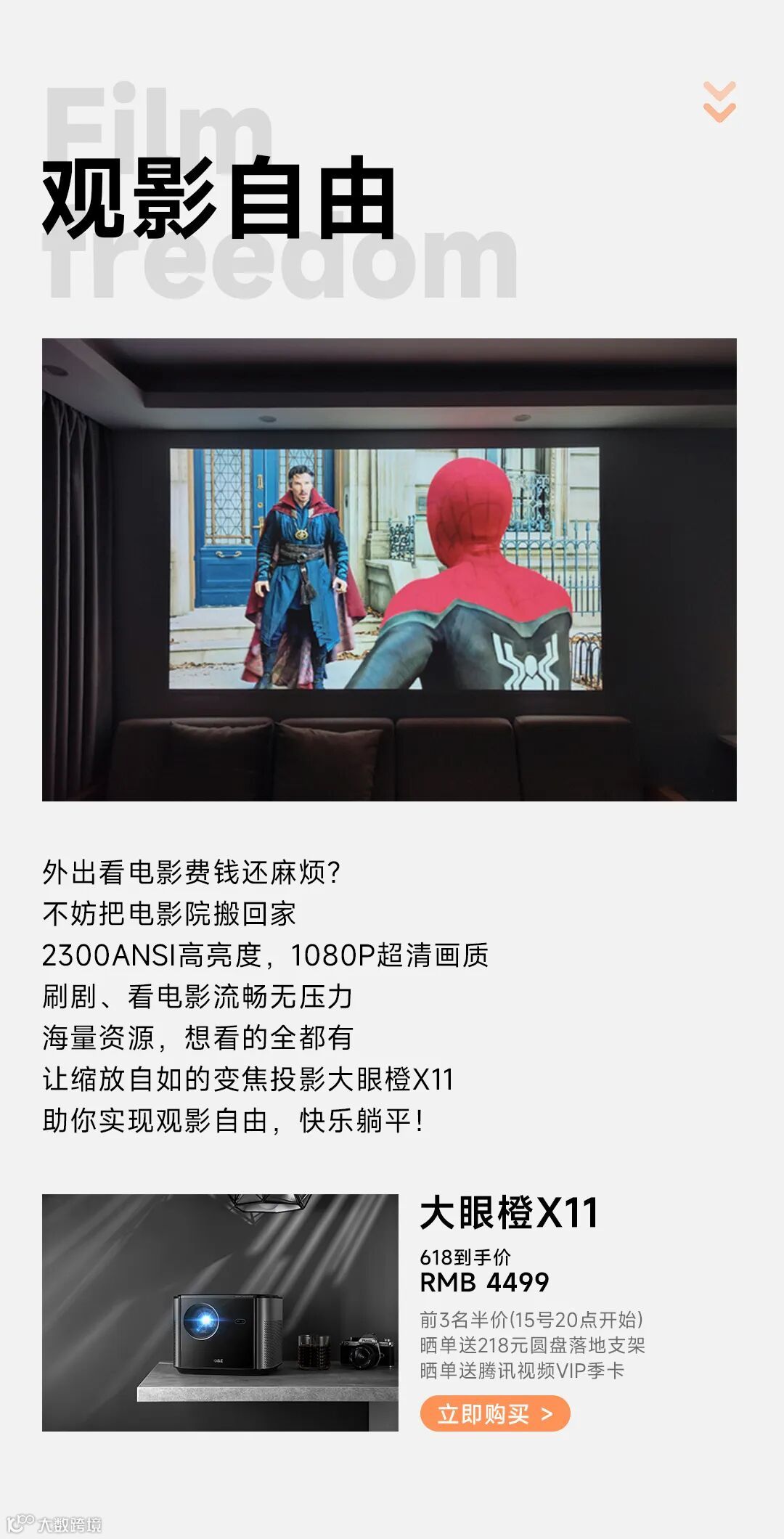 专注于智能投影仪研发智造与提供行业解决方案。关注大眼橙,了解大屏视界,分享品质生活。点我获取投影知识、玩机攻略、最新优惠、活动快讯、客服咨询等一手爆料!