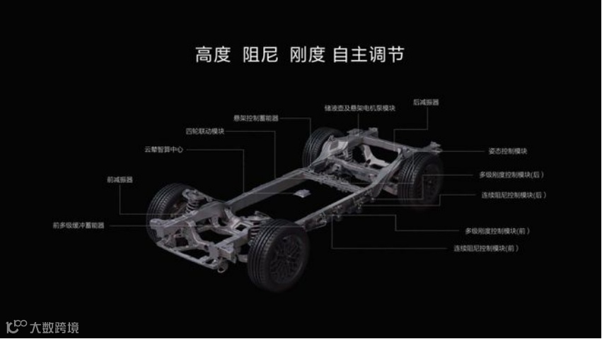 简单来说,云辇-P是一套可以调节的液压悬挂系统,是一种软硬件结合的主动底盘控制技术。除了底盘高度调节、阻尼调节等外,还包括了感知层、决策层,此外,整套系统还可以支持OTA升级,这也是云辇-P的一大亮点。