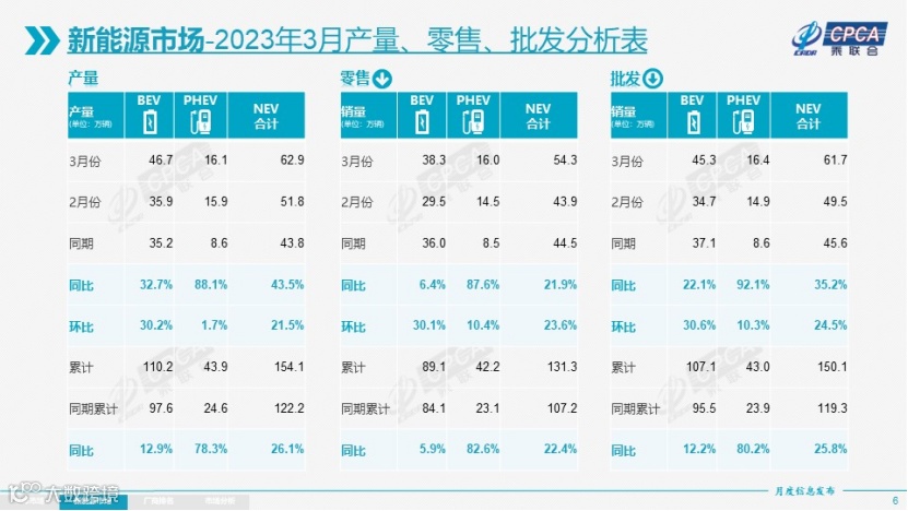 新能源汽车市场上,1—3月新能源乘用车批发销量达到150.1万辆,同比增长25.8%。其中,3月新能源乘用车批发销量达到61.7万辆,同比增长35.2%,环比增长24.5%。