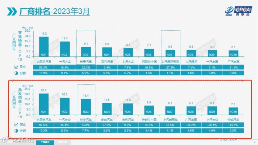 具体到车企,3月新能源乘用车企业受春节和补贴退出等因素影响而走势分化,比亚迪纯电动与插混双驱动夯实自主品牌新能源领先地位,以长安、上汽、广汽、吉利等为代表的传统车企在新能源板块表现尤为顽强。
