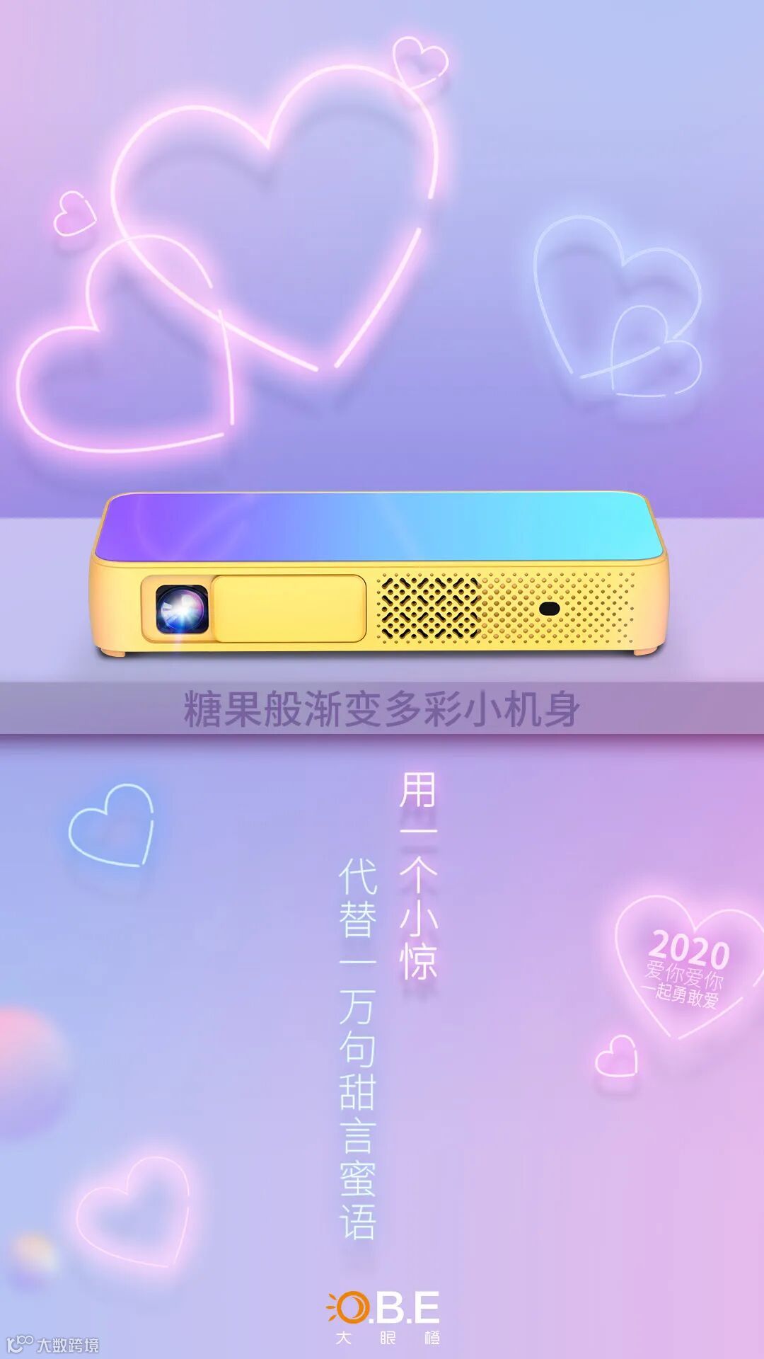 大眼橙X2投影仪--精彩生活的标配。渐变色多彩的设计搭配小巧机身,是一台入门级全能便携投影机型,相信与众不同的你看到它的第一眼就会爱上。