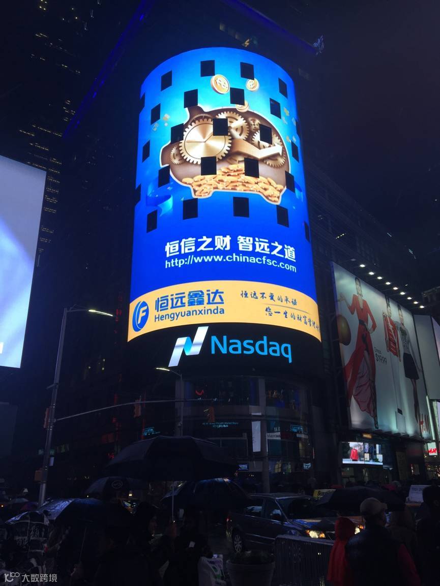 ▲ 2015年12月23日,恒远鑫达科技集团品牌广告强势登陆美国纽约时代广场Nasdaq大屏幕,并进行24小时昼夜持续展播。