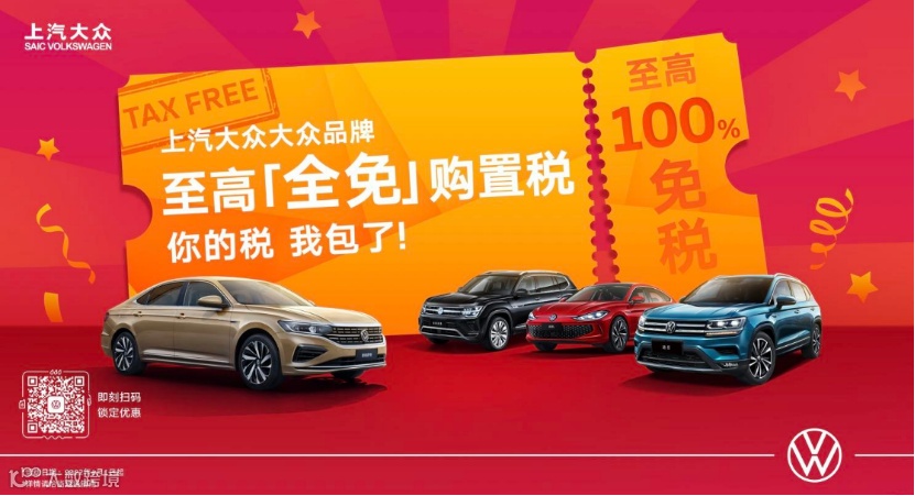 宣布旗下车型全系至高享购置税全免,其中包含,新途观L、途观X、途岳、新帕萨特全免购置税,其他符合国家减免政策的燃油车产品减免75%购置税。同时,上汽大众品牌多款产品还推出了置换补贴、