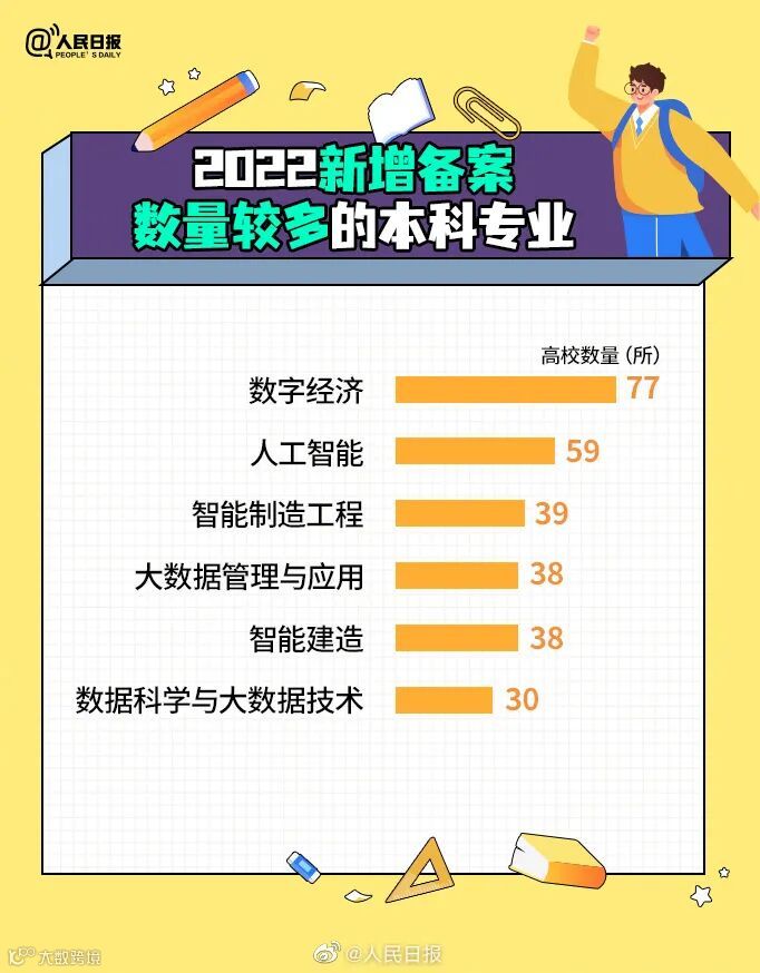 据悉,此次新增了地球系统科学、生物统计学、未来机器人、安全生产监管、国家公园建设与管理、医工学、乡村治理、家庭教育、无障碍管理等21种新专业,并正式纳入《普通高等学校本科专业目录》。截至目前,本科专业目录共包含93个专业类、792种专业。此外,数字经济、人工智能、智能建造等成为新增备案数量较多的本科专业。