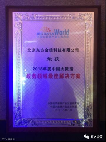 会上,还发布了专有领域奖项,该奖项对大数据各行业从技术创新、技术领先性、方案成熟度、行业影响力等多个维度出发,选出具有代表意义的企业进入奖项名单。东方金信以其在政务领域优秀的表现,荣获“2018年度政务领域最佳解决方案奖”。