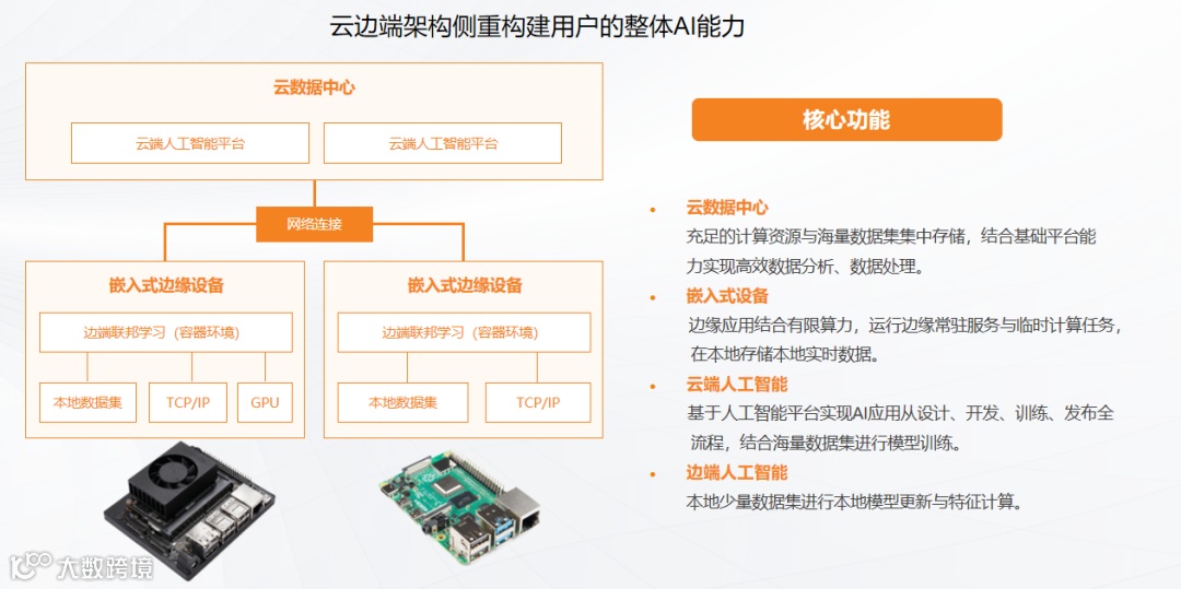 在云边端三位一体的IT架构中,云计算中心进行大规模模型训练,然后将初始模型推送到边缘设备,由边缘端结合实时数据进行模型特征提取,再由云端实现多边缘设备模型的聚合。这种协同进化可以提高系统的智能程度,同时保持低延迟和高效能。