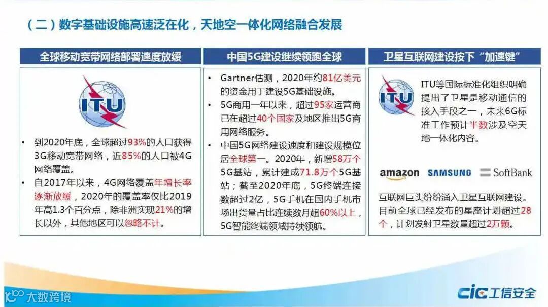 2、数字基础设施高速泛化,天地空一体化网络融合发展。