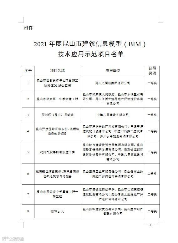 为促进昆山市建筑产业现代化发展,加快推进BIM技术在建设领域的应用,我局组织开展了2021年度昆山市建筑信息模型(BIM)技术应用示范项目申报工作。经实施单位申报、专家评审,共评出BIM技术应用示范项目15个。昆山西部医疗中心建设工程项目荣获2021年度昆山市建筑信息模型(BIM)技术应用示范项目称号。