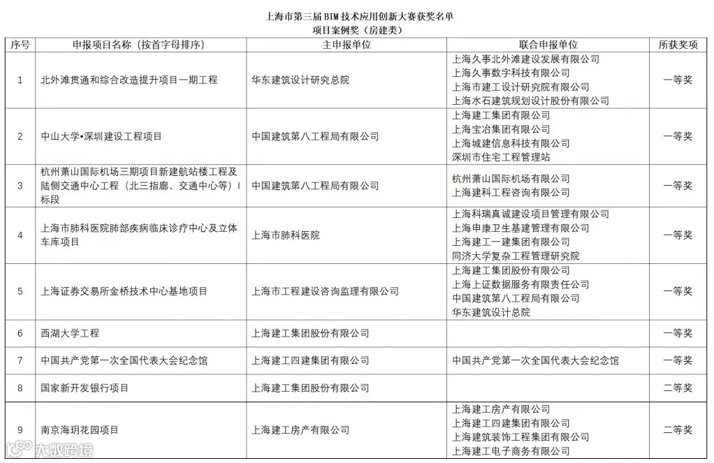 项目案例奖(房建类)获奖名单