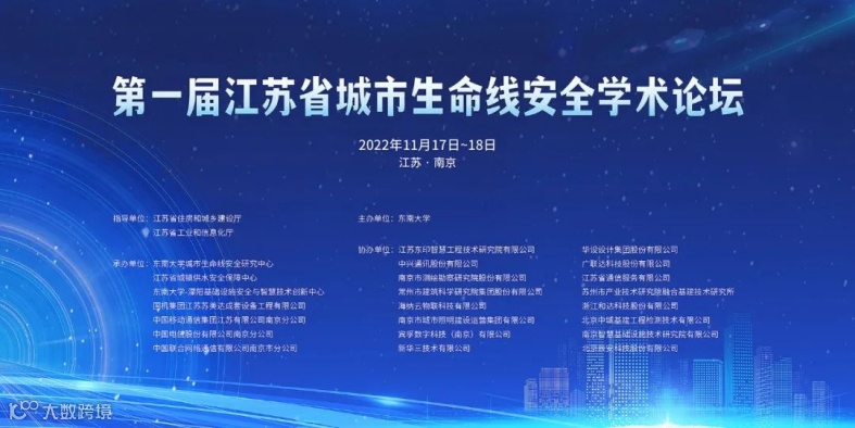 2022年11月18日,第一届江苏省城市生命线安全学术论坛近日在南京举行。论坛由江苏省住房和城乡建设厅、江苏省工业和信息化厅指导,东南大学主办。江苏省住房和城乡建设厅周岚厅长、中国工程院王景全院士、中国工程院杨永斌院士、中国科学院李杰院士、江苏省工业和信息化厅胡学同一级巡视员、江苏省住房与城乡建设厅陈浩东副厅长、南京市城乡建设委员会于茂高主任、日本工程院外籍院士吴智深教授、新加坡工程院苏志强院士等领导专家出席会议。宾孚数字科技(南京)有限公司作为协办单位之一,公司首席顾问兼CEO翟超应邀出席开幕式,并在平行分论坛作主题分享。