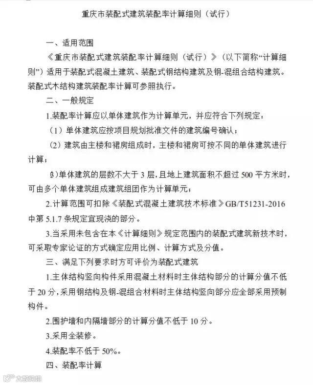 关于印发《重庆市装配式建筑装配率计算细则(试行)》的通知