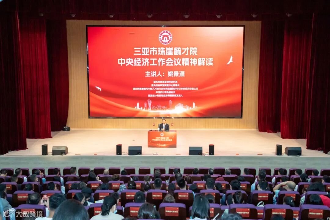 3月2日,中央经济工作会议精神解读专题报告会在崖州湾科技城南开中学伯苓楼报告厅举行。国务院参事室特约研究员,国务院参事室调查中心理事长,国务院参事室与中国人民银行合作的金融研究中心专家委员会副主任,中国统计学会副会长,国家统计局前总经济师兼新闻发言人姚景源,应邀为珠崖毓才院学员做专题报告。崖州区政府、崖州湾科技城管理局、崖州湾科技城开发建设有限公司、园区企业、高校和科研院所代表等近千人听取了报告。