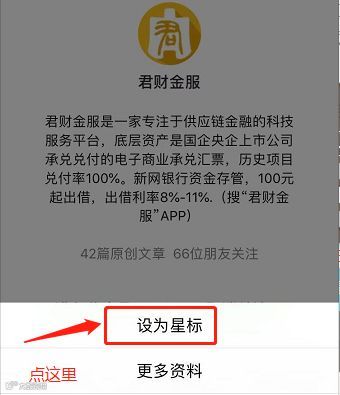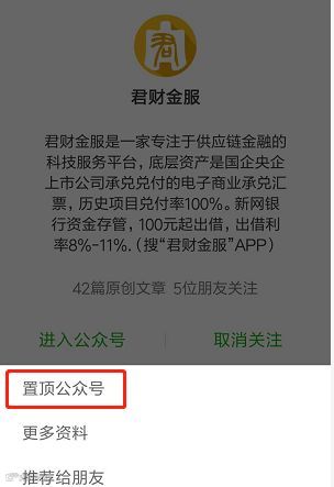 按下图将君财公众号设置为「置顶公众号」;
