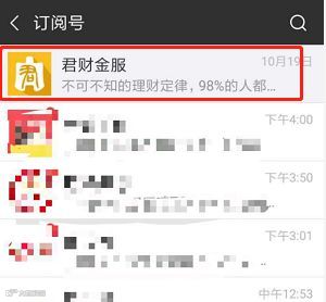 首先找到君财金服公众号