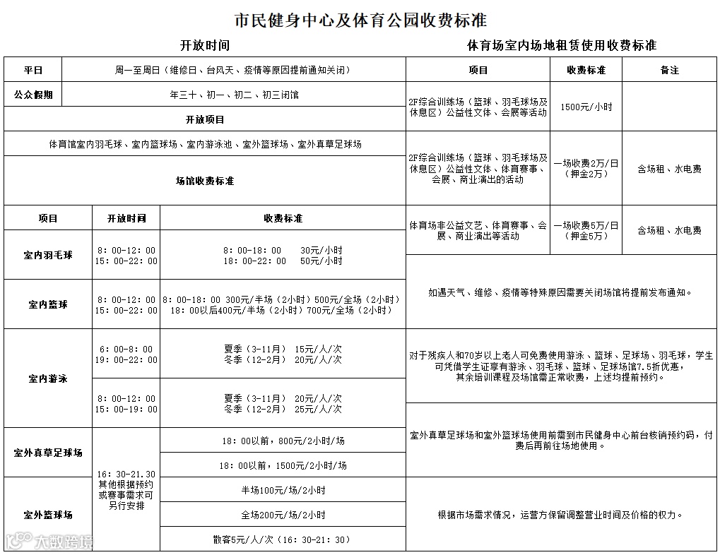 市民健身中心所有项目正式收费~