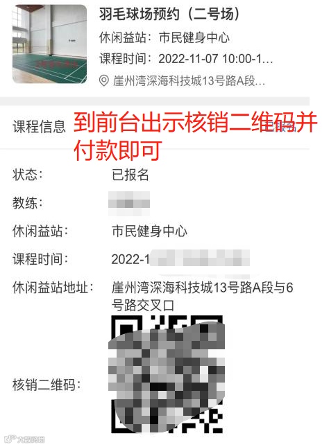 使用需到市民健身中心前台核销付款