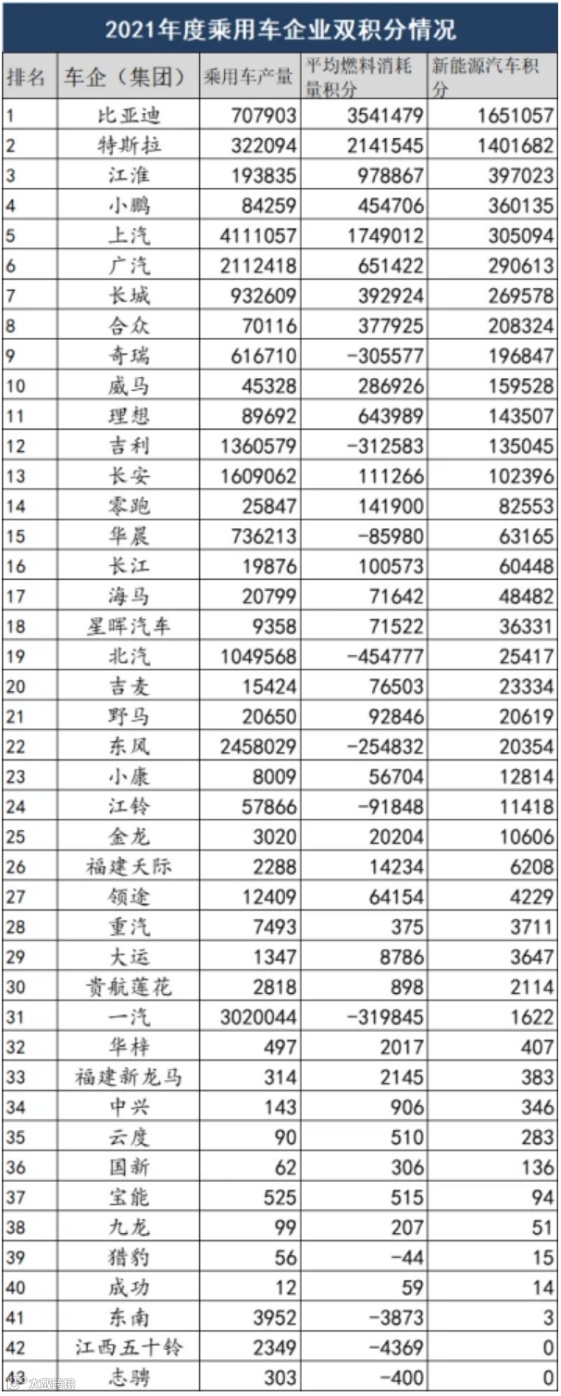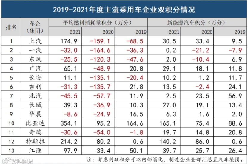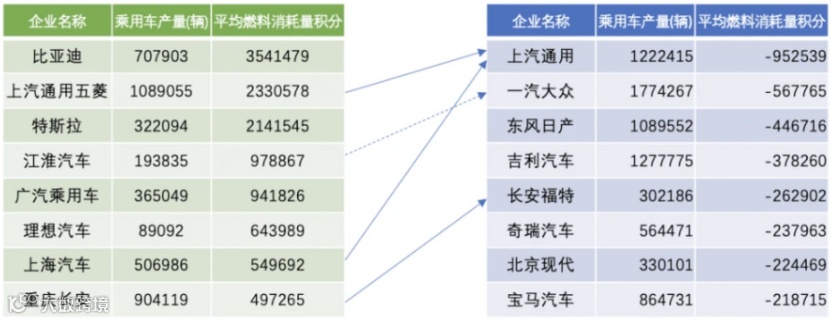 例如过去新能源积分最短缺的企业分别是长城、南北大众、上汽通用、东风日产等。