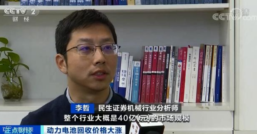 江西省赣州市豪鹏科技有限公司营销部总监 谢丰海:单个电池回收价格普遍从去年2万多元的价格水平,涨到现在3万多元,价格涨幅将近50%。