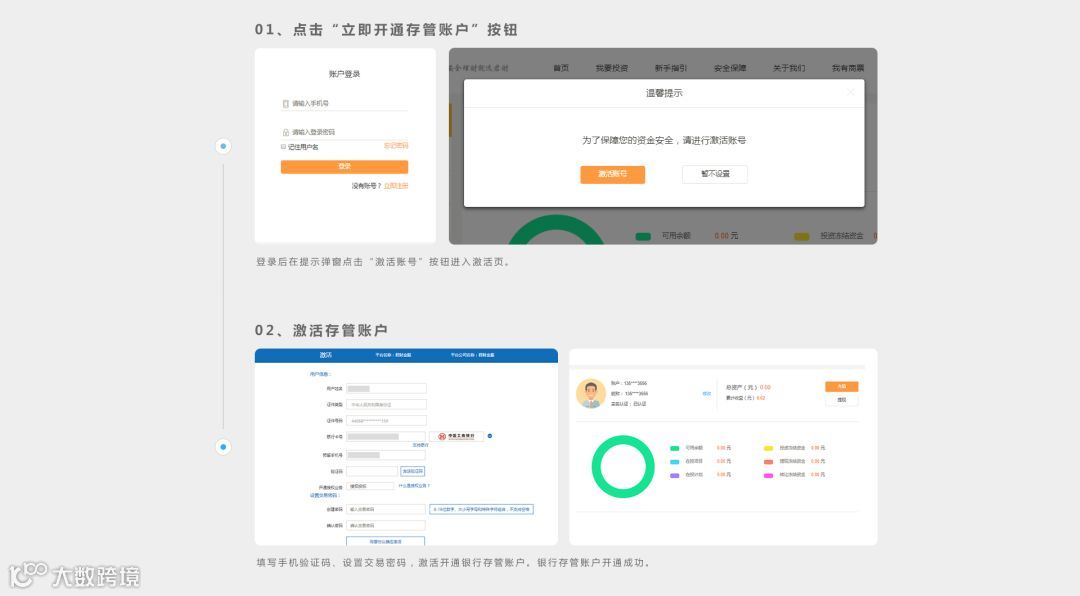 进入存管账户页面后,填写手机验证码,设置“交易密码”即完成存管账户开户激活;