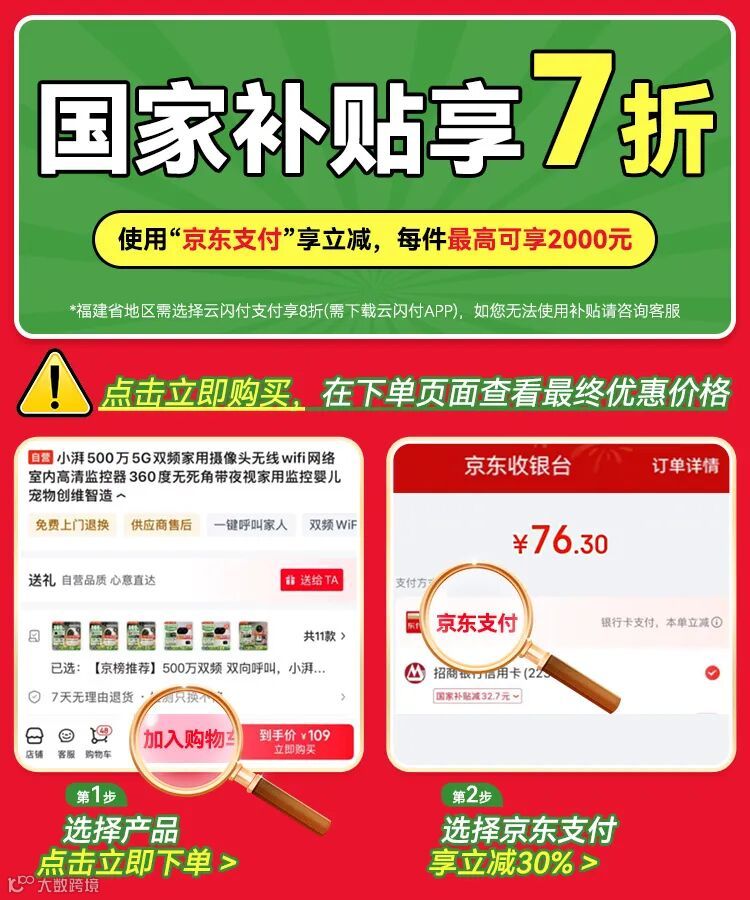 *全国可享受30%国补(福建、港澳台除外);福建地区仅支持20%国补;前往京东搜索#小湃摄像头、#荣耀小湃摄像头,点击相关链接,即可跳转购买!