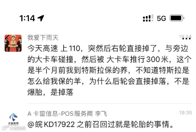因此,在发生本次事故后部分车主怀疑与此前召回有关。对此,1月12日,特斯拉官方回应称:“目前获知信息如下:事件车辆在行驶过程中与右侧车道车辆发生碰撞,并在擦碰、挤压的过程中,对右后侧车轮部位造成了损伤,导致车轮变形、分离。”同时,特斯拉方面强调,“网络上传播的‘车轮脱落导致事故发生’与事实不符,也与此前召回情况无关。”