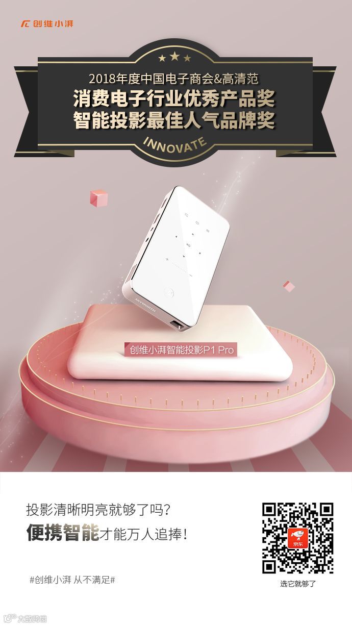 凭借这便携小巧、时尚轻奢的外观、实用的投影功能,获得高清范“智能投影最佳人气品牌奖”和中国电子商会颁发的“消费电子行业优秀产品奖”实至名归!