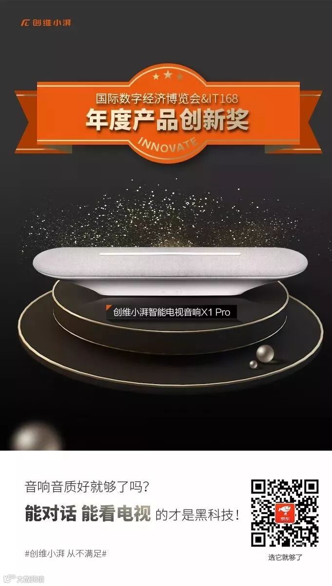 无论是国际数字经济博览会还是IT168媒体年度评选上,创维小湃电视智能音响X1 Pro都是亮眼的存在。
