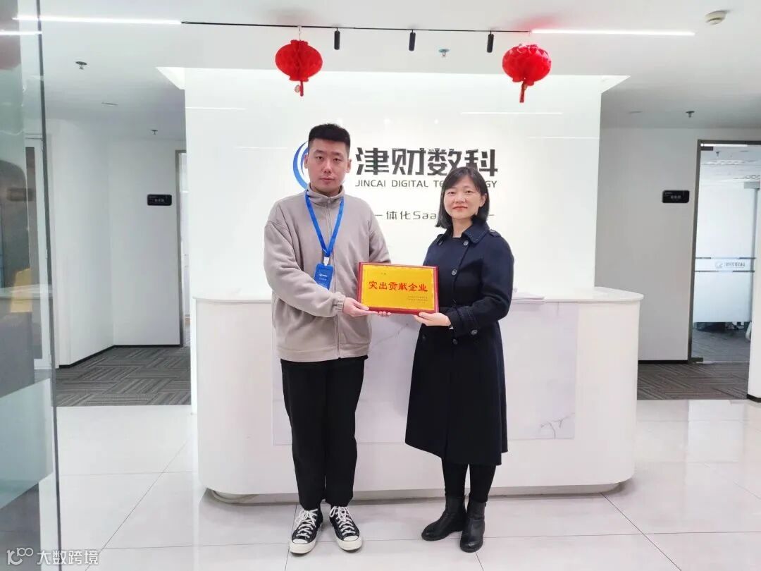 调研结束后,相关领导为津财数科颁发“二〇二二年度·突出贡献企业”奖并合影留念。