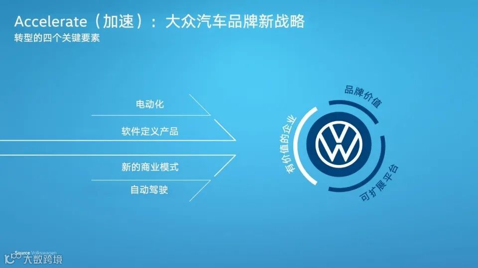 日前,大众集团发布“ACCELERATE”战略,该战略旨在加快大众从传统汽车制造商向软件为驱动力的移动服务提供商的转型。