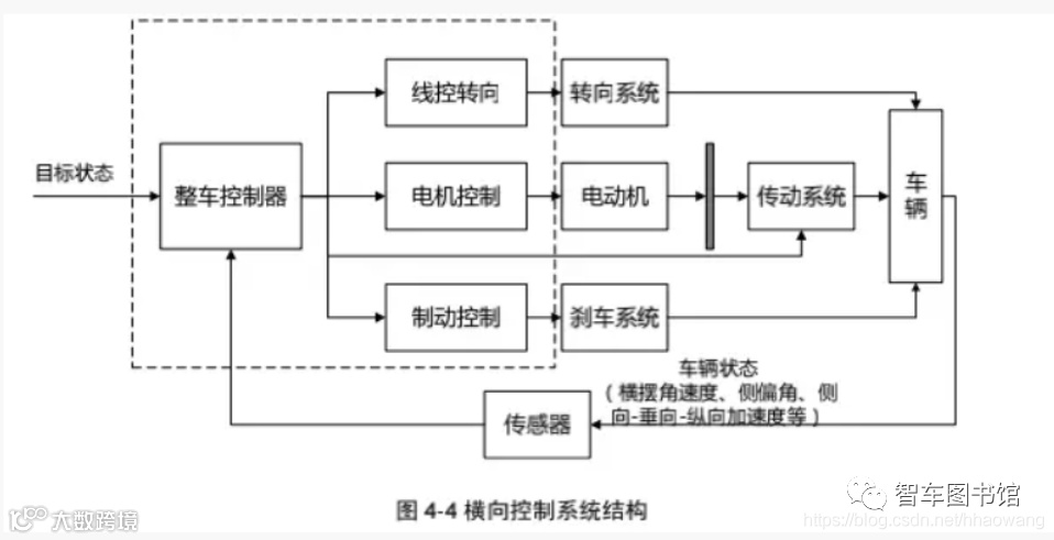 横向控制系统基本结构如图 4-4。控制目标一般是车中心与路中心线间的偏移量,同时受舒适性等指标约束。