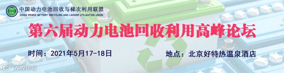 动力电池回收与梯次利用联盟、中国电子节能技术协会将于2021年5月17-18日在北京举办“第六届动力电池回收利用高峰论坛”。