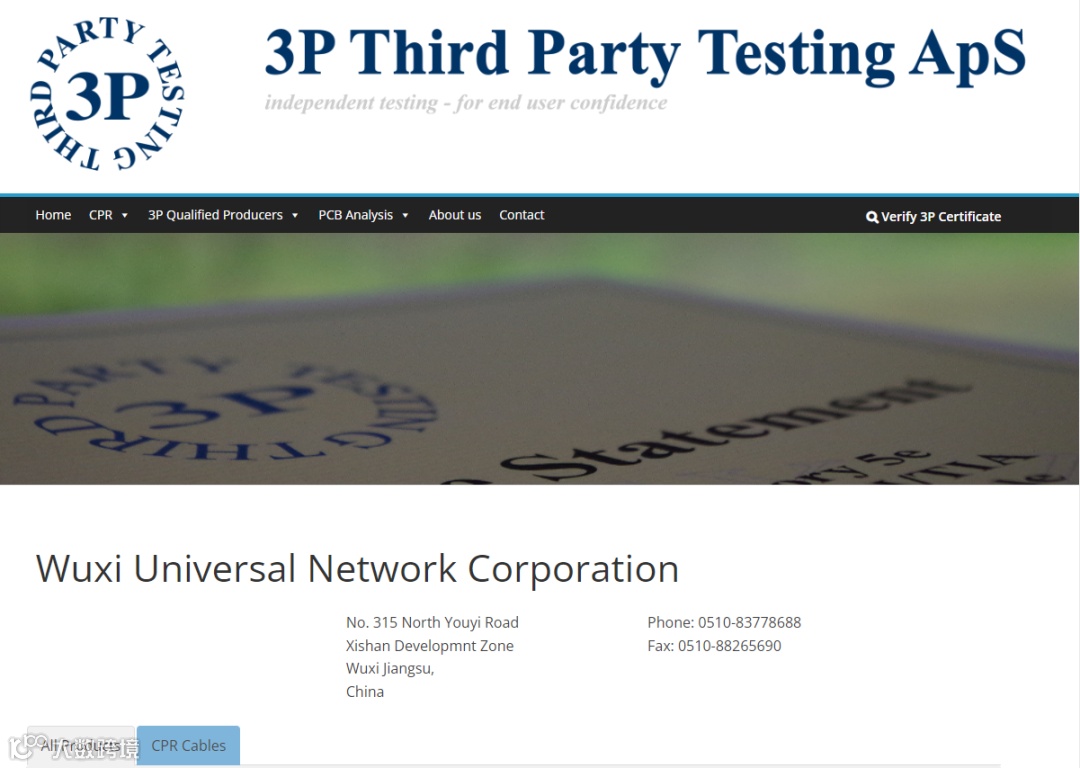 欢迎登录官网查询我司证书:Wuxi Universal Network Corporation – 3P Third Party Testing ApS (3ptest.dk)
