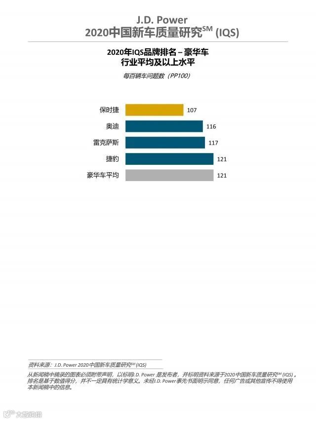 至于豪华品牌中,表现最优的并非雷克萨斯,而是保时捷荣获豪华车细分市场新车质量第一名。其次则为奥迪品牌,雷克萨斯则位列豪华车细分市场新车质量第二和第三名。