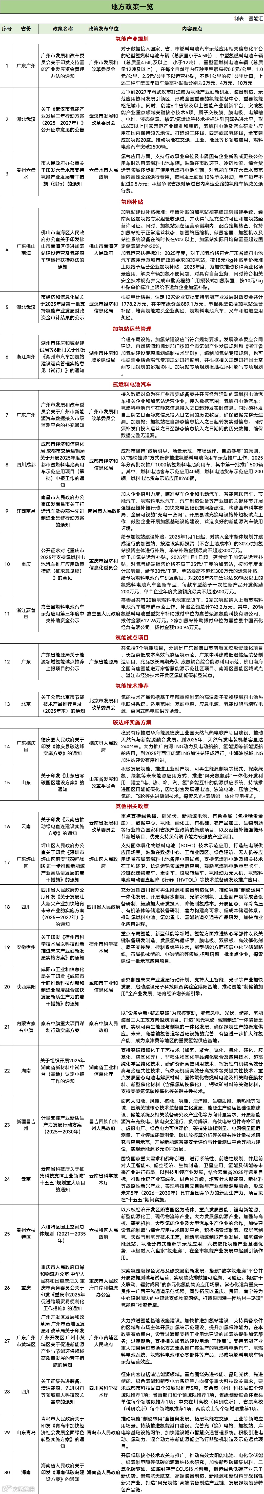 本月值得注意的是,在氢能产业规划方面,广东广州、湖北武汉、贵州六盘水发布相关文件。