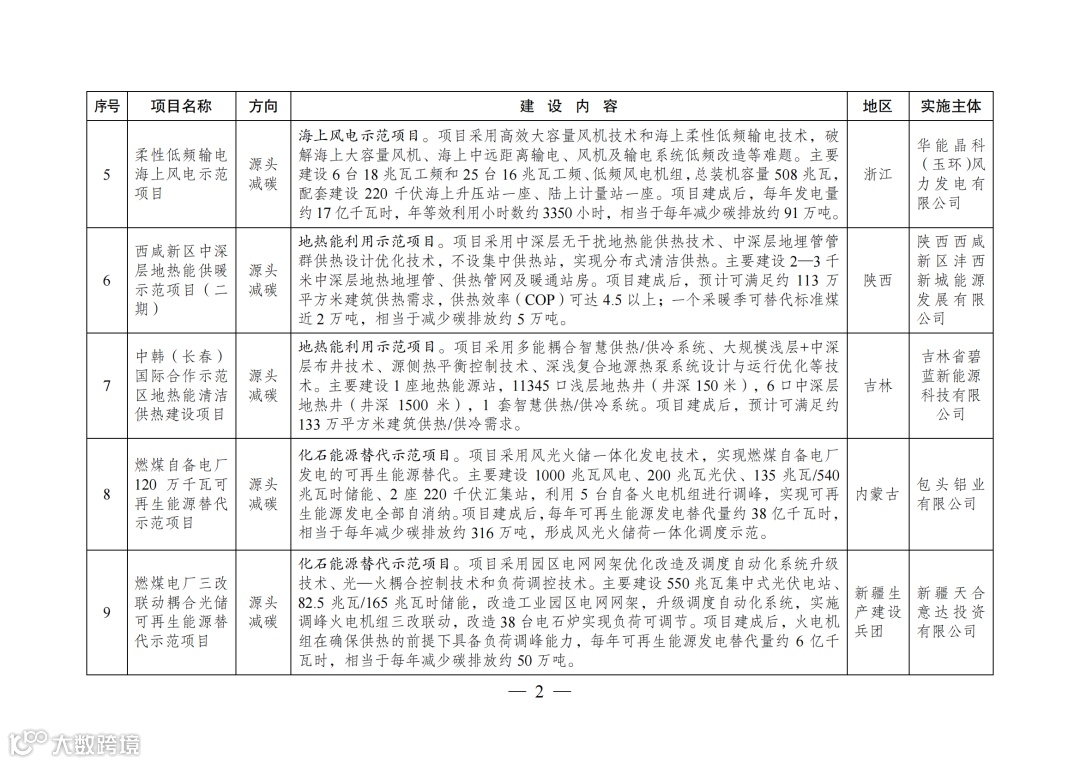 此外,通知还提到,第一批示范项目清单中的第19项“基于纯氢燃气轮机创新的‘电—氢—电’新模式实证示范项目”(实施主体:国家电投集团北京重燃能源科技发展有限公司、内蒙古霍煤鸿骏铝电有限责任公司)退出绿色低碳先进技术示范工程。