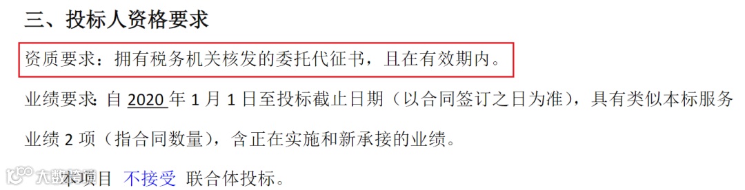 而文章开头提到的项目招标就是为了解决该问题而设立的。从招标文件的供应商要求中,我们可以看到其要求投标人具备税务机关核发的委托代征书,也就是灵活用工平台的基础资质。